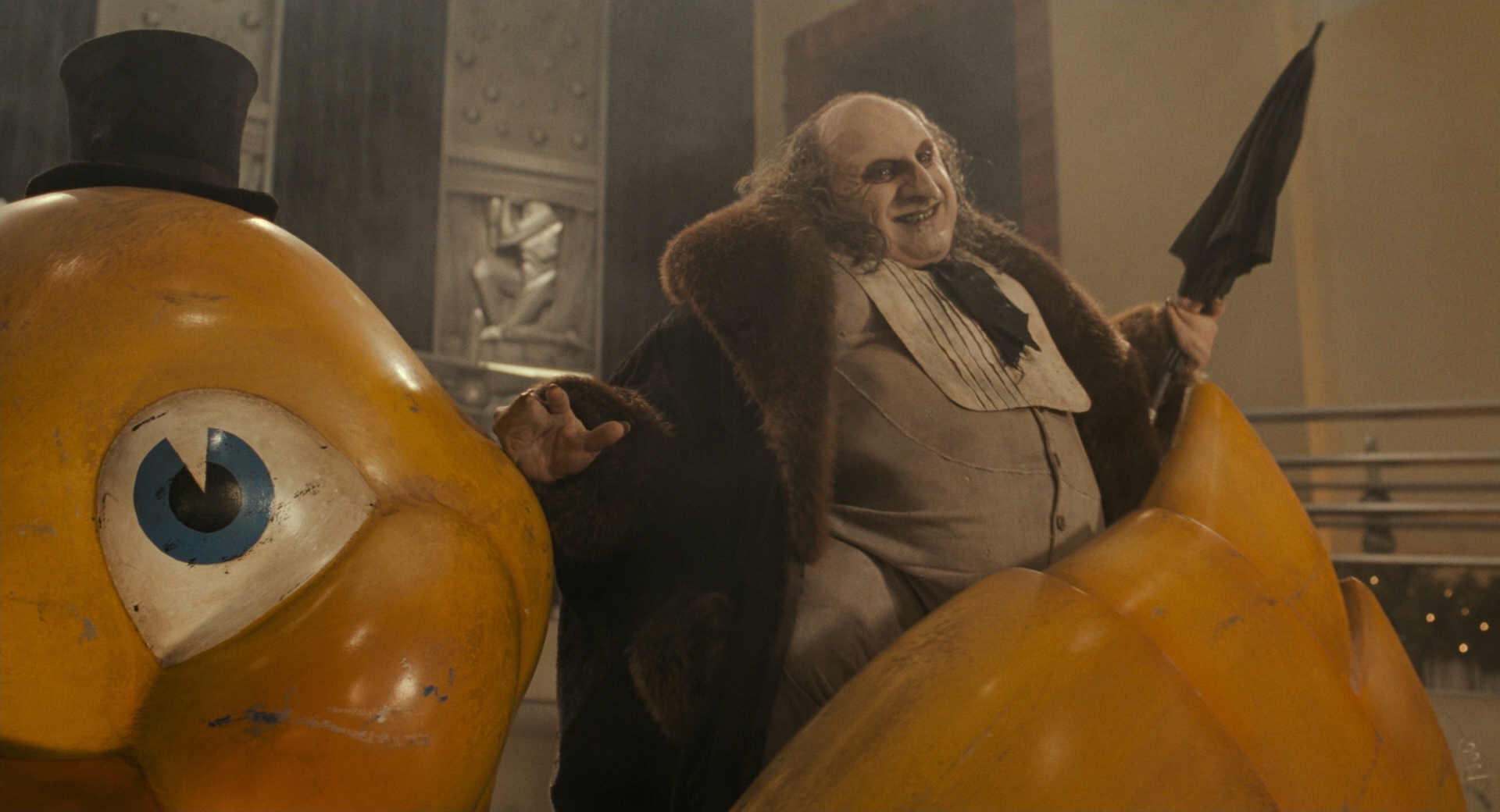 The new Dolby Atmos sound mix has a broader dynamic range in Danny Elfman’s musical score than the Atmos track on Batman did. The new disc has plenty of bassy heft in the music. In fact, the score is a little annoyingly rumbly. With no Batwing jet in this outing, Returns offers fewer opportunities for overhead effects. The only ones that caught my attention involved Penguin’s dumb helicopter umbrella and a swirling frenzy of flying bats.