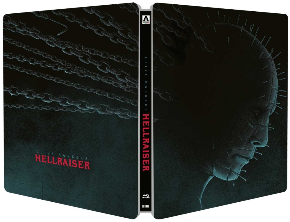 The prestige boutique label Arrow Video later stepped up with a remastered Blu-ray that first appeared in 2016, bundled with the first two sequels in an elaborately-packaged collection called Hellraiser: The Scarlet Box. The original film was then broken out on its own for a Limited Edition SteelBook (the copy I have) in 2017, followed in 2019 by a Special Edition in a regular keepcase. All three copies from Arrow represent the same disc, just in different packaging configurations.