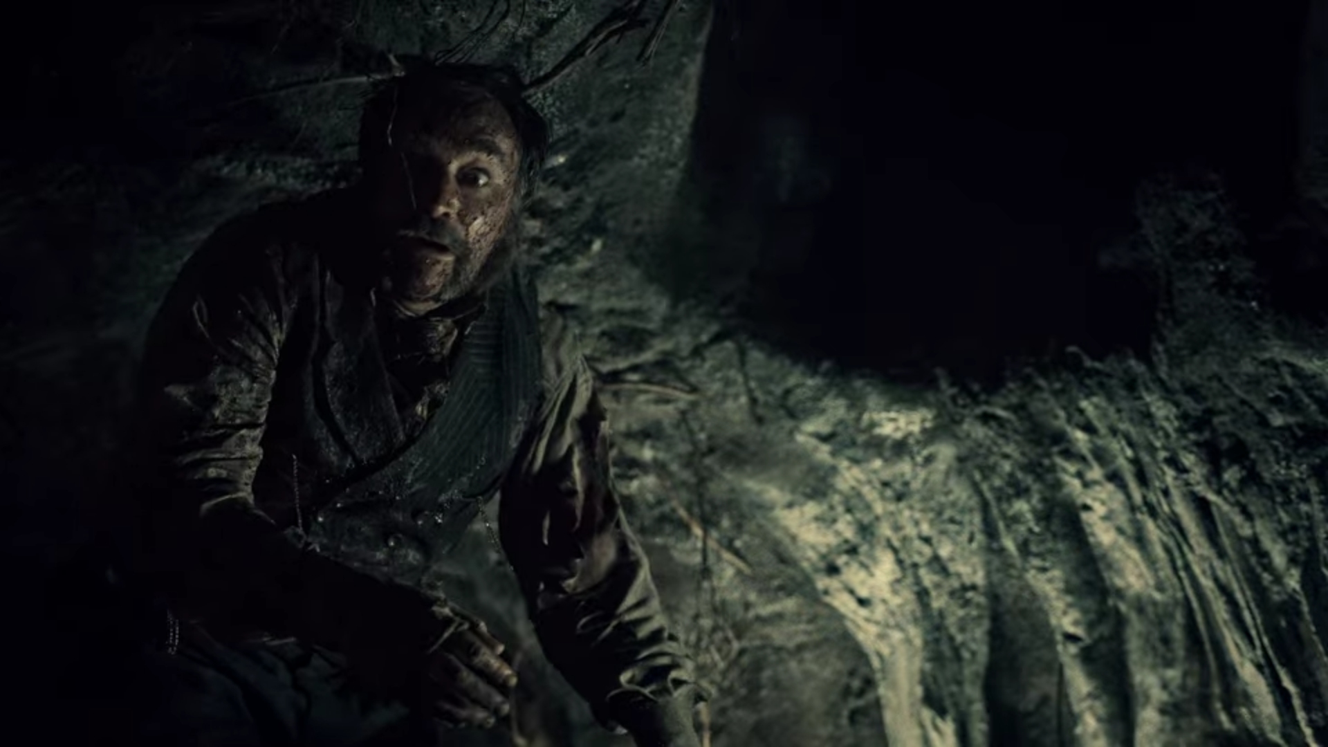 The second episode was directed by Vincenzo Natali (Cube, Splice), who must be awfully busy these days, having also recently helmed the premiere of Amazon’s The Peripheral. Set somewhere in the late 19th or early 20th Century, this one concerns a cemetery owner named Masson (David Hewlett) who resorts to robbing the graves he’s supposed to tend in order to pay his debts. (Wait, this is already starting to sound familiar.) Another disreputable loser, Masson suffers from claustrophobia and voices what sound like paranoid delusions about rats somehow stealing bodies after he’s buried them.