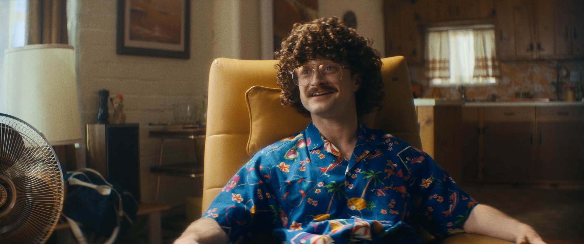 Right off the bat, the casting is inspired. Harry Potter himself, Daniel Radcliffe, stars as musical sensation Alfred “Weird Al” Yankovic. That’s not a combination I would have dreamed up on my own, but seeing him in character on screen feels so right and so perfect. The movie is filled with clever choices like that. Some of the most fun watching comes from the clutter of cameos by celebrities playing other celebrities. I won’t spoil them all here, but a few of the notable ones include Rainn Wilson as radio host Dr. Demento, Jack Black as Wolfman Jack, and Conan O’Brien as Andy Warhol. Even the real Weird Al turns up as a skeptical music producer. A pool party at Demento’s house will have you pausing and replaying the scene to pick out all the famous faces.