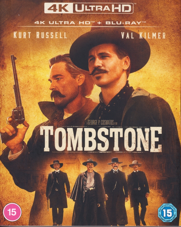 Tombstone was originally a production of Buena Vista Pictures, a subsidiary of Disney. The latter released the movie on DVD back in the day in both its theatrical cut and an extended version labeled the “Director’s Cut” (Cosmatos apparently being the director in question) that added about five minutes of extra footage to plug some of the plot holes. Unfortunately, that Director’s Cut came as part of a Vista Series DVD package notorious for the video transfer’s terrible edge enhancement artifacts. I still have that disc, and it looks pretty ghastly.