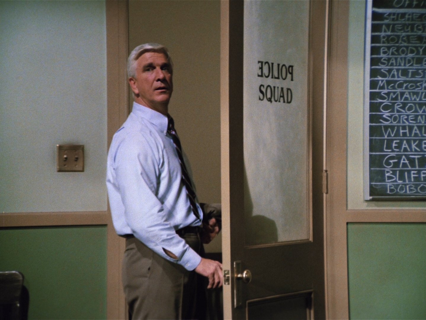 Police Squad! was presented as a half-hour sitcom, but played totally straight, with all the actors committing as if they’d been cast in a serious drama. Episodes are littered with numerous sight gags buried in the background of scenes, never acknowledged or called-out by the characters. That formula worked tremendously well for Airplane!, where audiences sitting in a darkened theater, their attention focused on a huge screen, could catch every detail lobbed out at them, while a crowd of other people around them laughed uproariously at even the subtlest of jokes. It worked much less well on the confines of a small screen, where viewers were accustomed to comedies having the laughter of a studio audience on the soundtrack to clue them in whenever something funny was supposed to be happening. Even a semi-serious dramedy like M*A*S*H utilized a prerecorded laugh track for that purpose, to clearly identify the humorous parts.