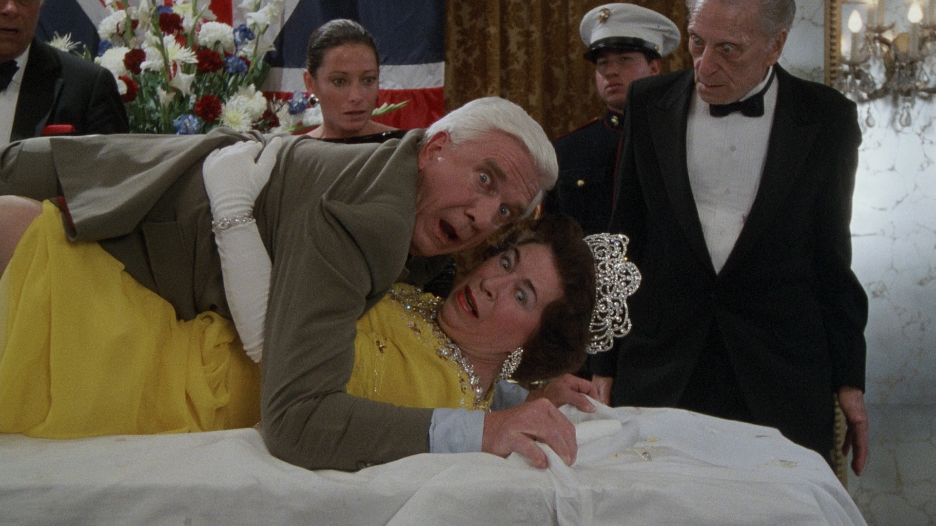 Although I was just about the perfect age to most appreciate it, I didn’t get to see The Naked Gun in a theater with an audience. I had to wait for a VHS rental from Blockbuster the following year, at which time my teenage self became obsessed with the movie and watched it over and over again. So did most of my friends. We all thought it was the most hilarious thing ever.