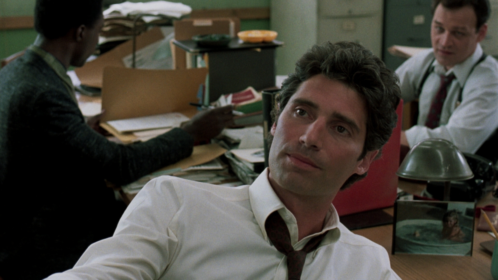The film opens with a bank heist and a pretty exciting car chase for a production of this budget. The culprit (Mulkey) dresses like a respectable businessman but has no regard for human life, or even his own safety, as he brazenly guns down security guards at the bank and plows through innocent pedestrians in his stolen Ferrari, until his getaway is finally brought to an end with a police barricade and a hail of bullets. Overworked L.A.P.D. detective Tom Beck (Michael Nouri) thinks the case is closed when the perpetrator dies in a hospital afterward, until FBI agent Lloyd Gallagher (MacLachlan) shows up at his desk and insists otherwise. This brazen sociopath, who’d been a model citizen with hardly so much as a traffic ticket on his record up until a few days earlier, has a partner following the same pattern that behaves exactly like him and – how weird is this? – just happens to have been in the next hospital bed over, awaiting a triple bypass surgery before standing up and walking away.